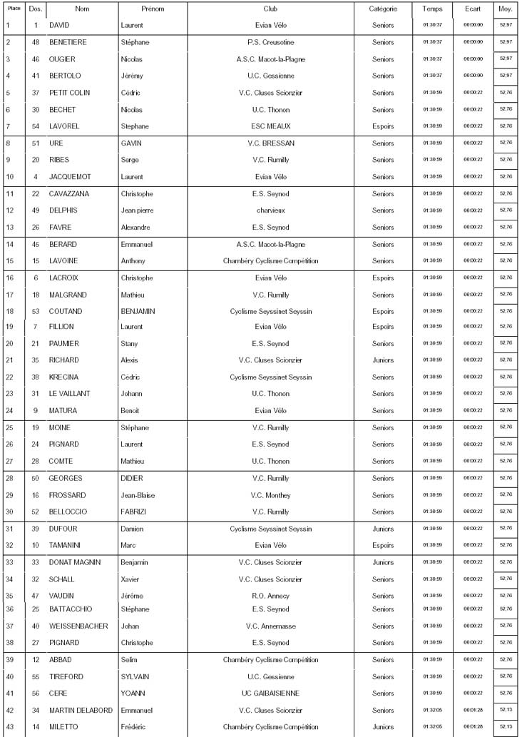 Résultats AMPHION LES BAINS