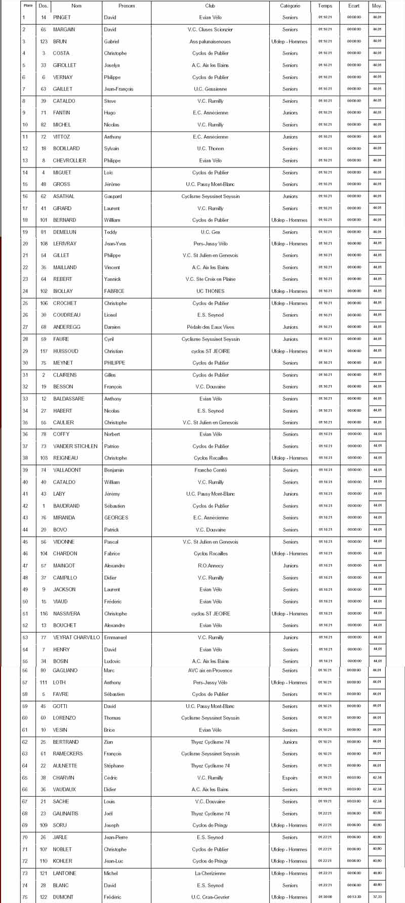 Résultats AMPHION LES BAINS