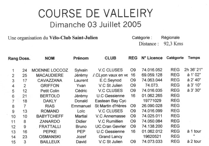 Résultats VALLEIRY