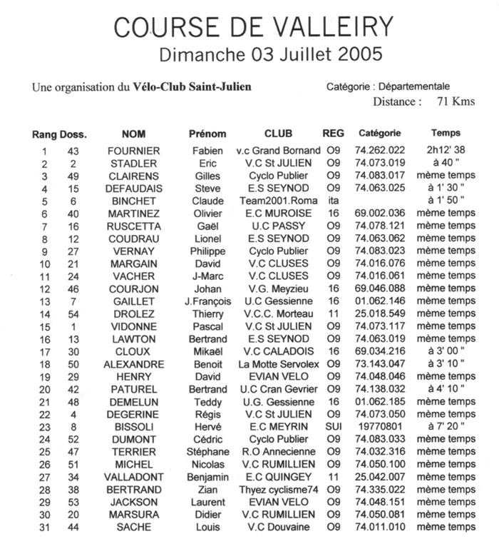 03 juillet 2005 à VALLEIRY