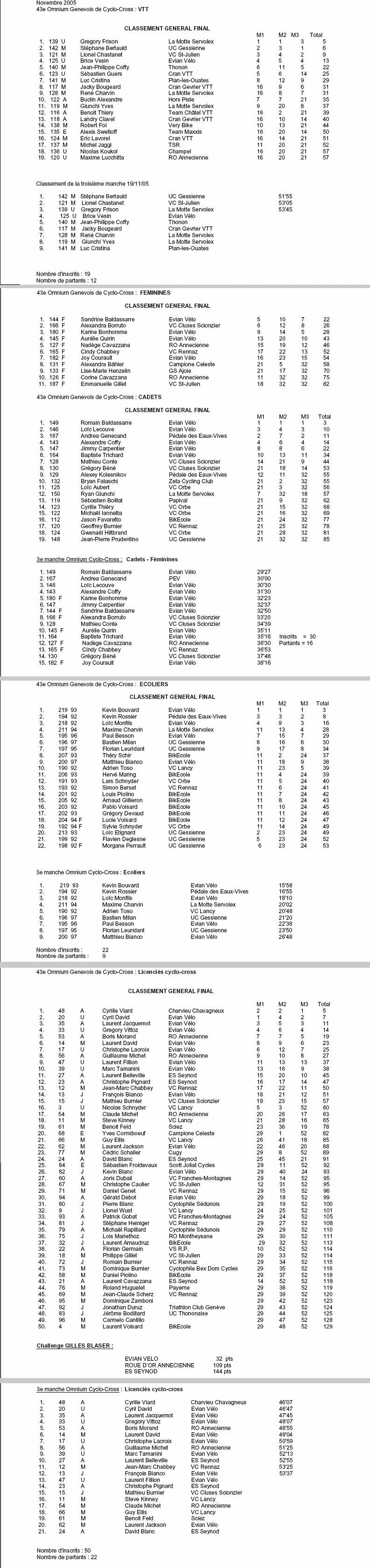 Résultats OMNIUM GENEVOIS CYCLO-CROSS -