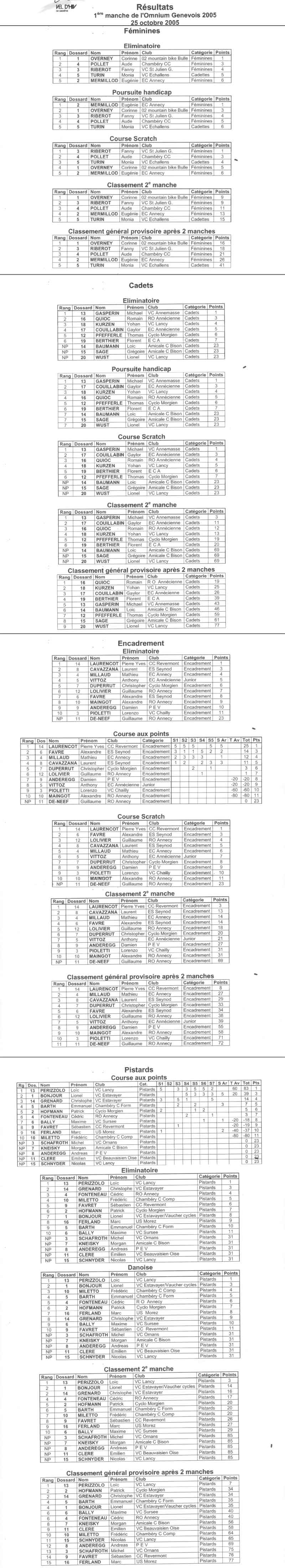 Résultats OMNIUM GENEVOIS PISTE 2èME MAN