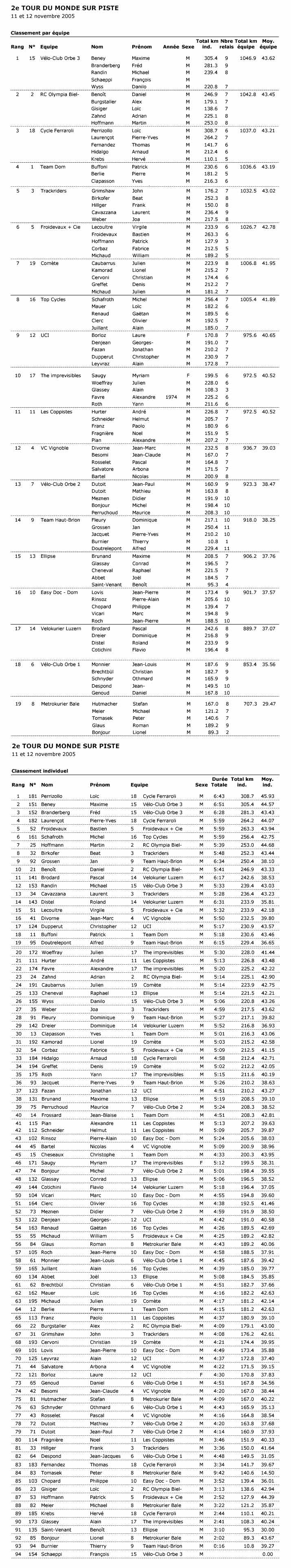 Résultats 24 HEURES PISTE AIGLE