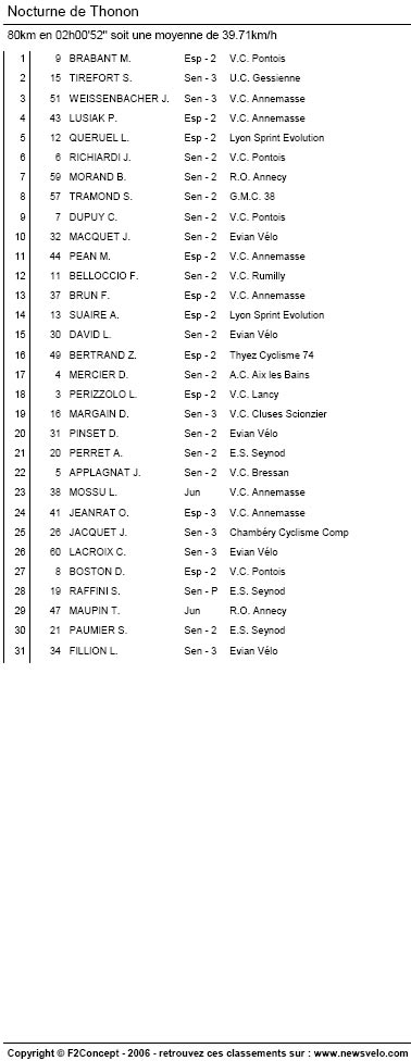 Résultats NOCTURNE DE THONON