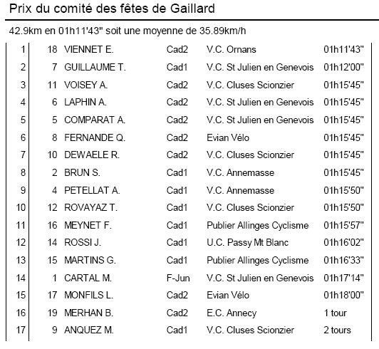 Résultats GAILLARD