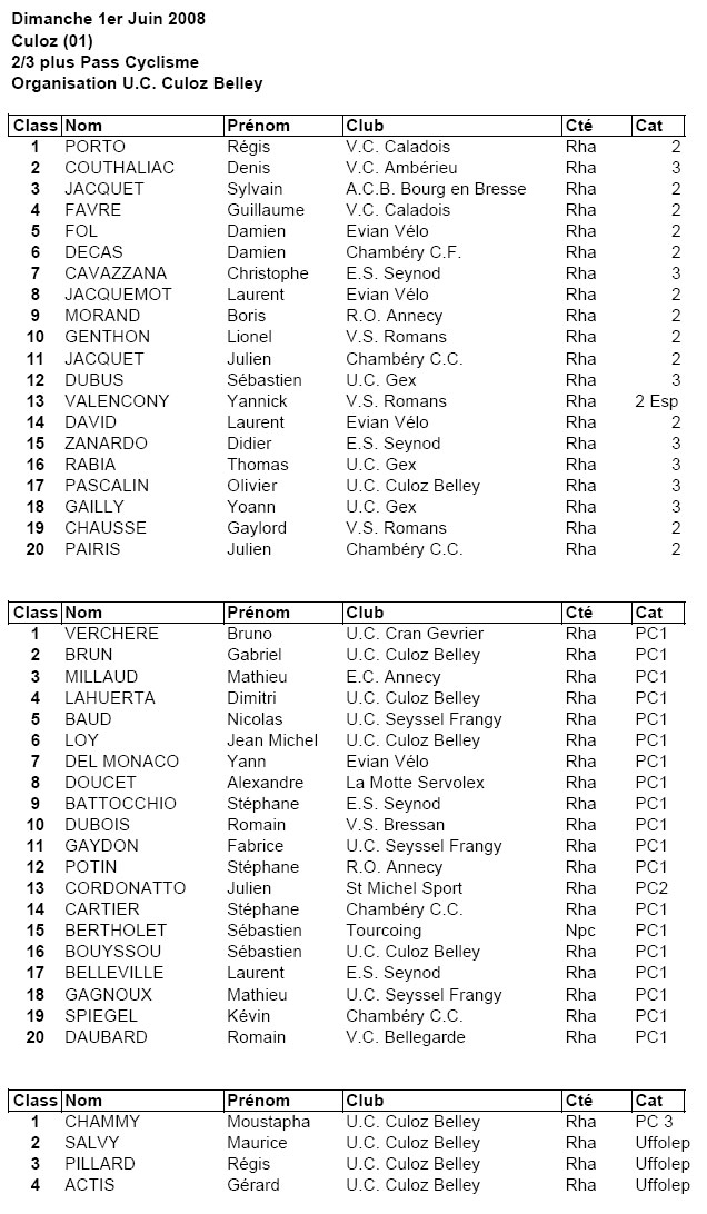 Résultats CULOZ