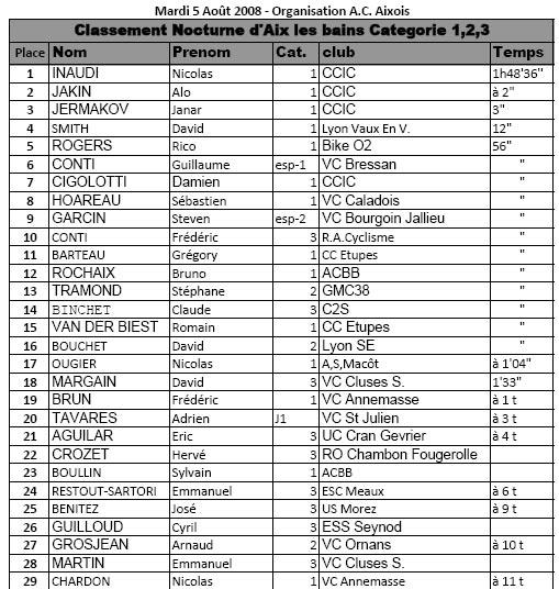 Résultats NOCTURNE AIX LES BAINS