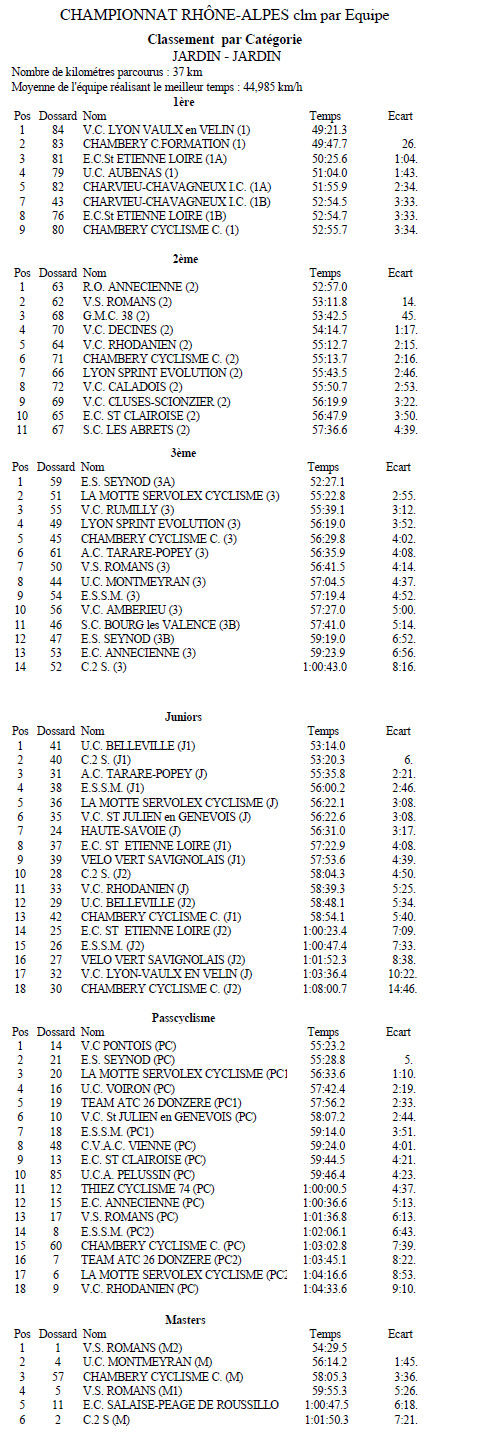 Résultats CHAMPIONNATS RA CLM éQUIPES