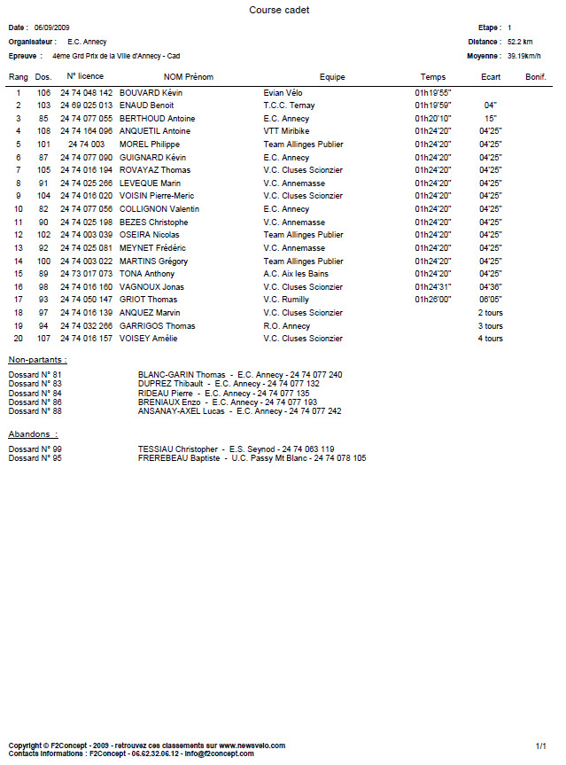 Résultats GRAND PRIX DE LA VILLE D'ANNECY