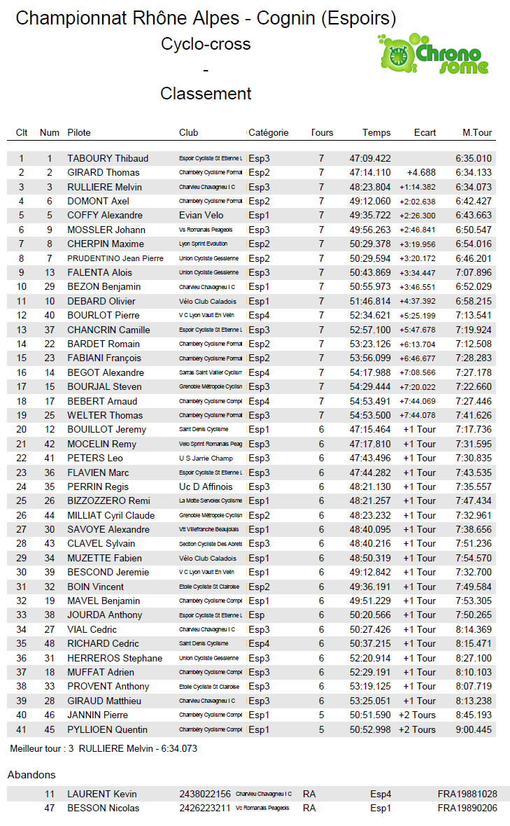 Résultats CHPT RHONE ALPES CYCLOCROSS - ESPOIRS