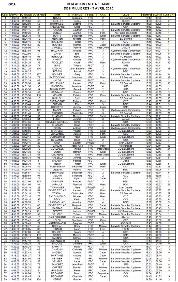 Résultats CONTRE LA MONTRE AITON