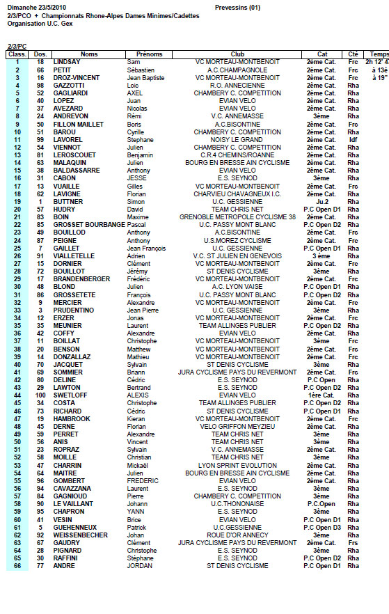 Résultats PREVESSIN
