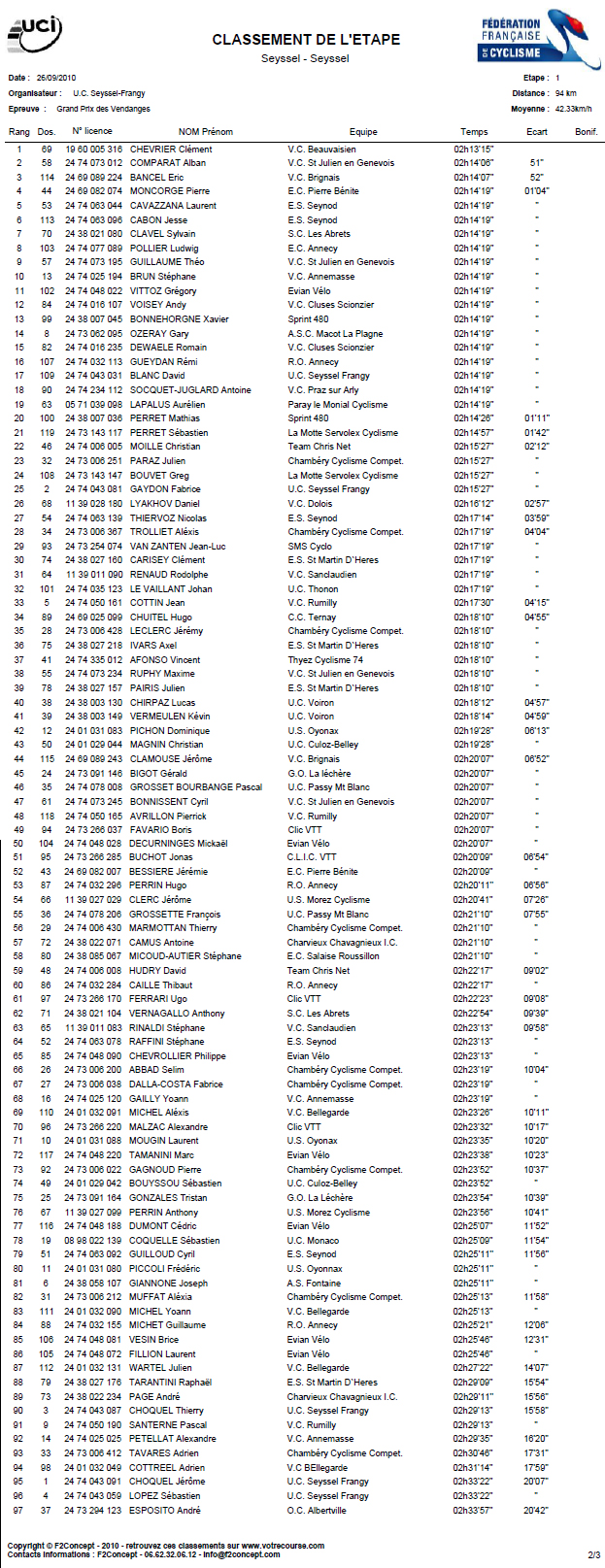 Résultats GRAND PRIX DES VENDANGES