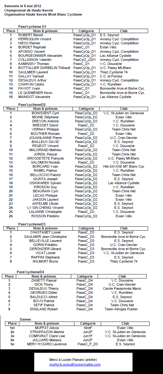 Résultats CHAMPIONNATS HAUTE SAVOIE ROUTE