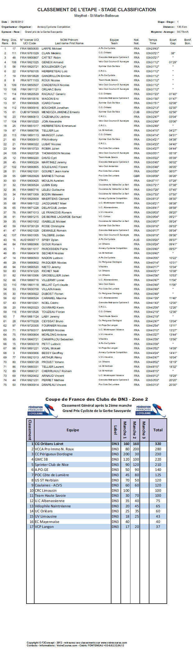 Résultats GRAND PRIX DE LA GERBE SAVOYARDE