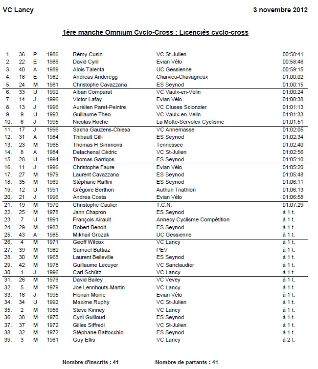 Résultats OMNIUM GENEVOIS #1