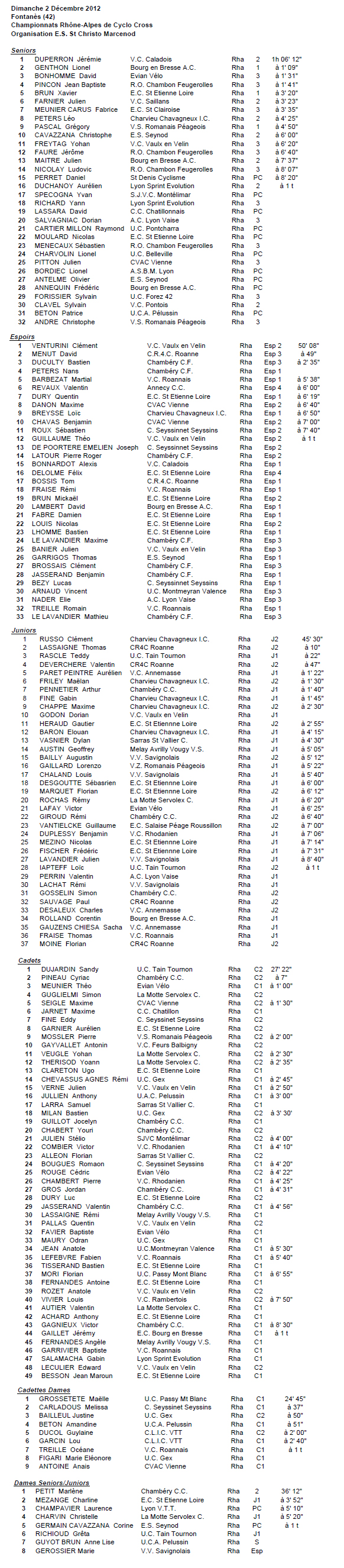 Résultats CHPT RHONE ALPES CYCLOCROSS