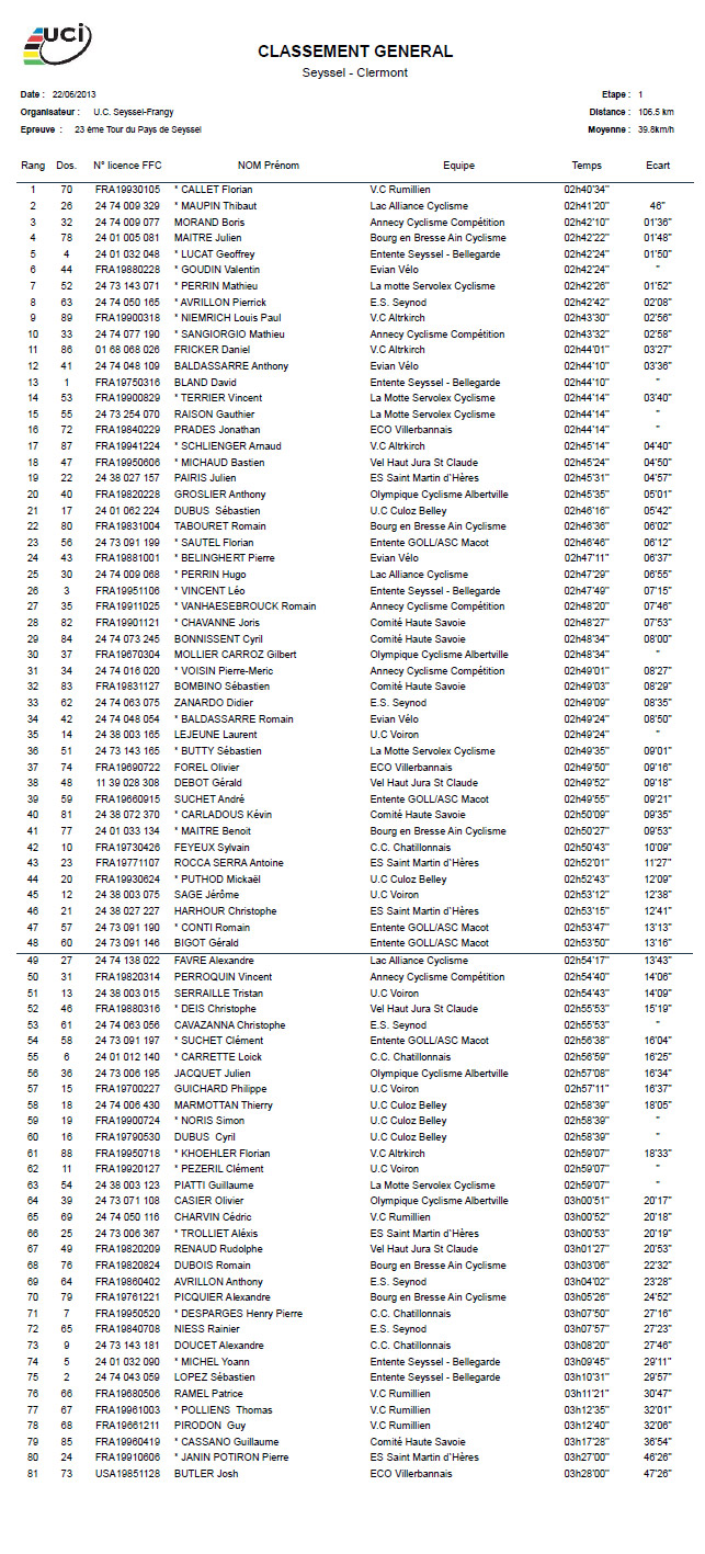 Résultats TOUR DU PAYS DE SEYSSEL # 1