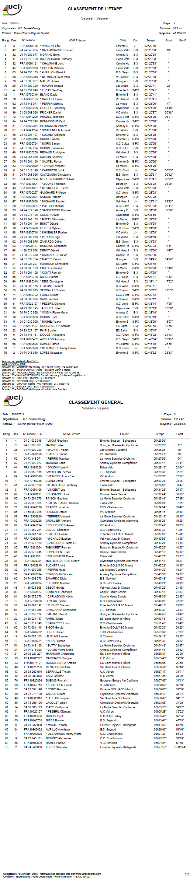 Résultats TOUR DU PAYS DE SEYSSEL # 3
