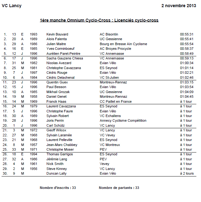 Résultats CYCLOCROSS PLAN LES OUATES #1