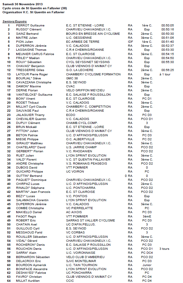 Résultats CYCLOCROSS ST QUENTIN FALLAVIER