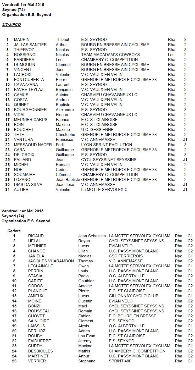Résultats 13èME SOUVENIR ANGEL GIUNTA