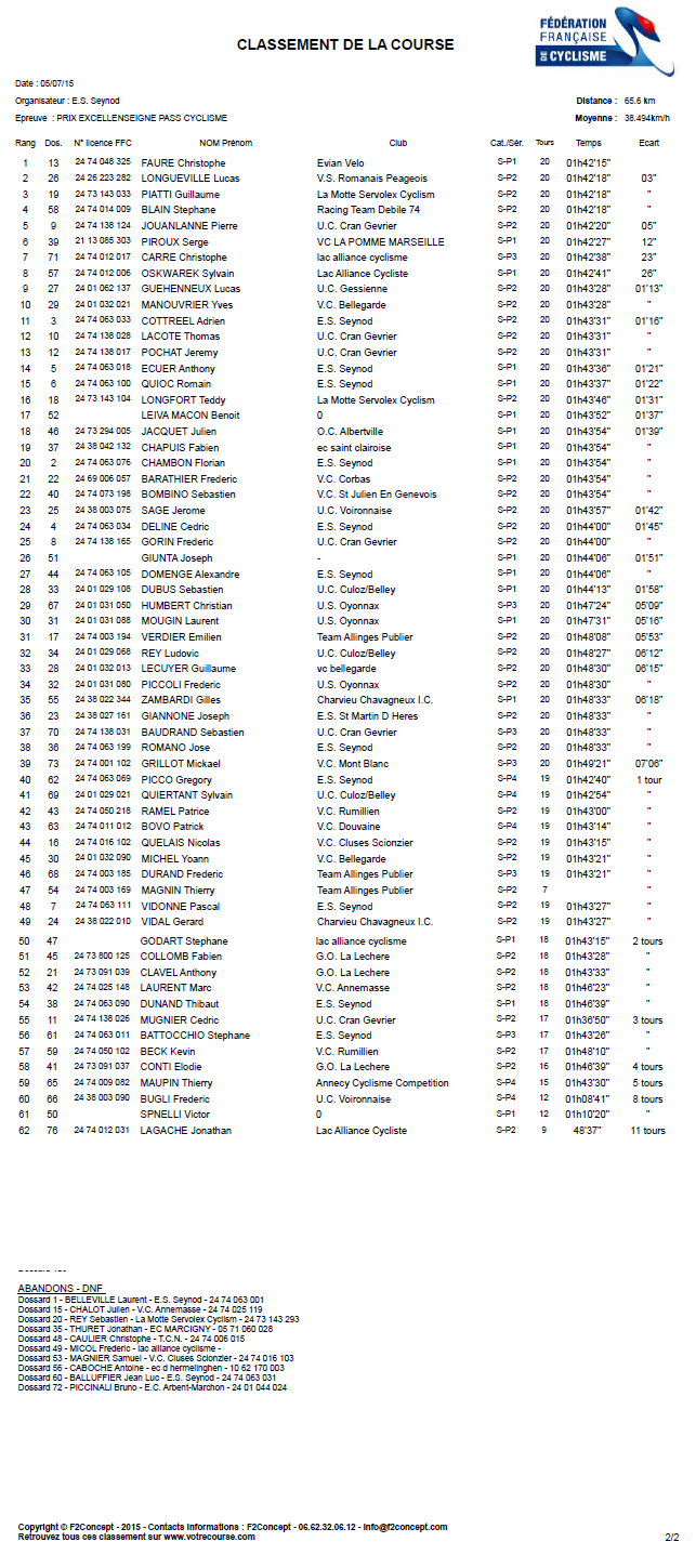 Résultats 7 èME GRAND PRIX EXCELL ENSEIGNES