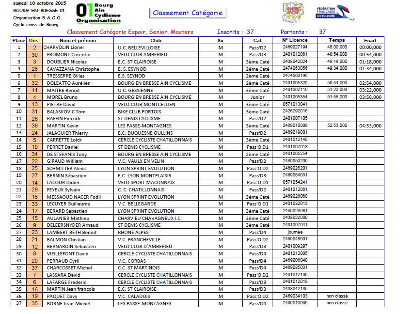 Résultats CYCLOCROSS DE BOURG EN BRESSE