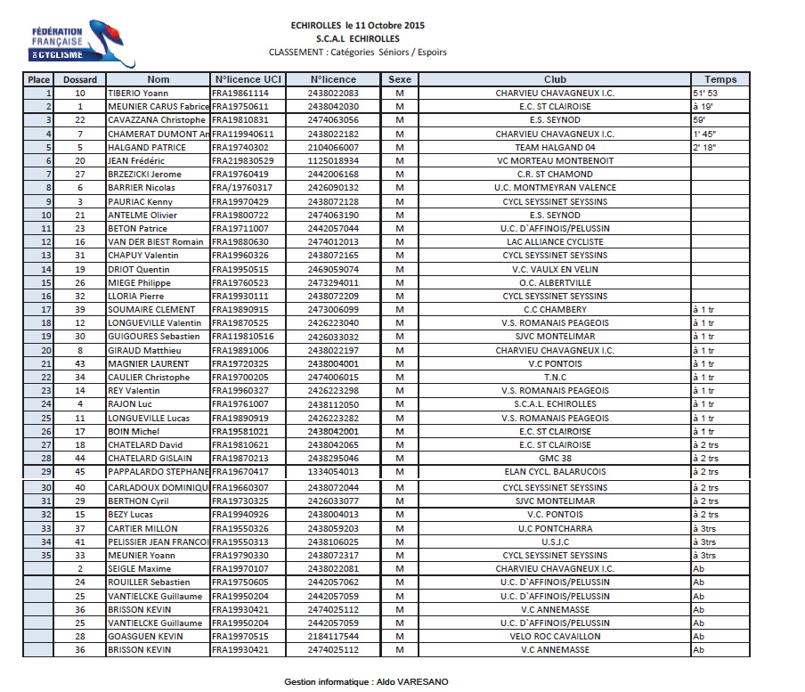 Résultats CYCLOCROSS D'ECHIROLLES