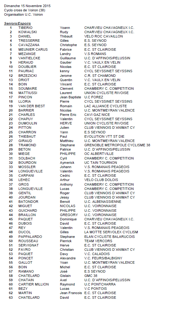 Résultats CYCLOCROSS DE VOIRON