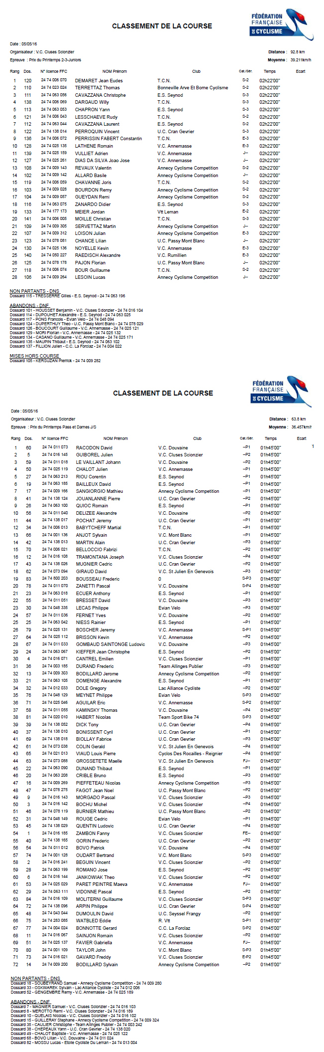 Résultats CHAMPIONNAT HAUTE SAVOIE