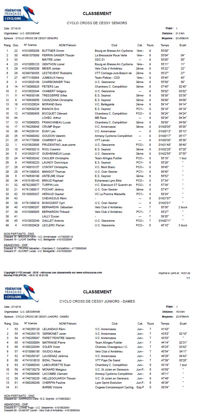 Résultats CYCLOCROSS DE CESSY